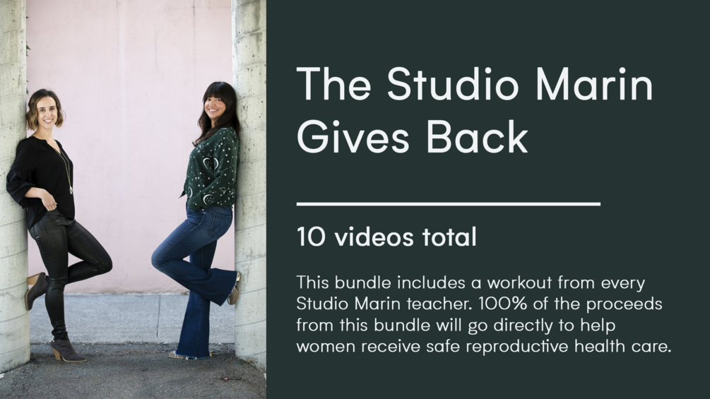 This bundle includes a workout from every Studio Marin teacher. 100% of the proceeds from this bundle will go directly to help women receive safe reproductive health care.